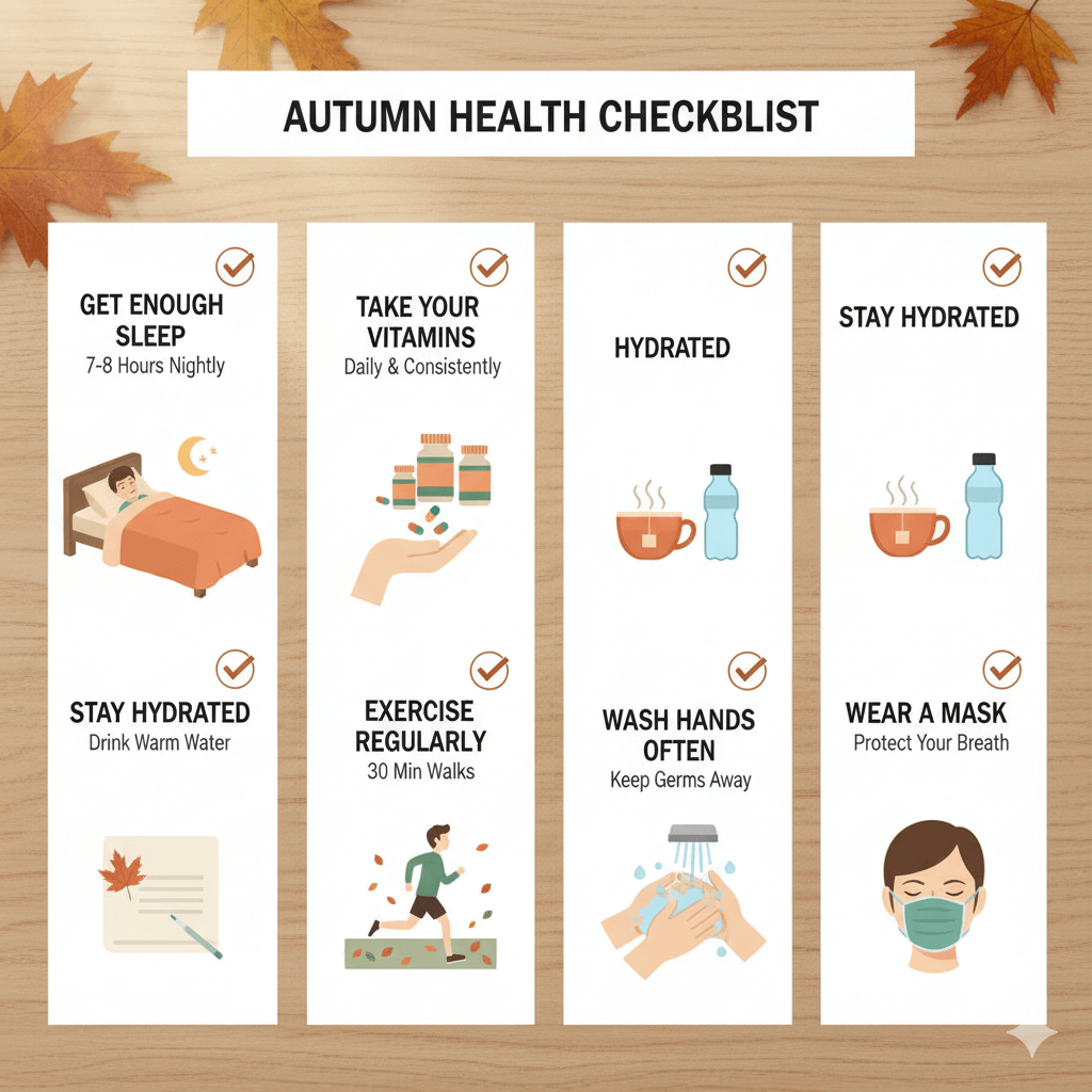 이 체크리스트를 냉장고나 책상에 붙여두고 매일 확인하며 실천하면, 이번 가을은 건강하고 활기차게 보낼 수 있을 거예요.